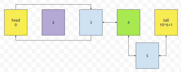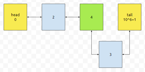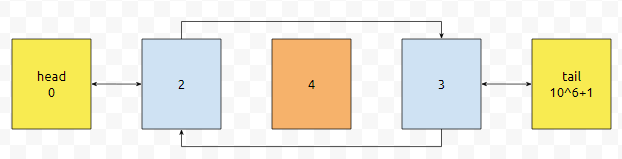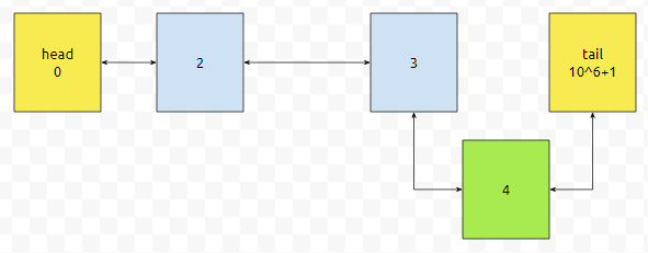 다음에, 3을 추가했다면 어떻게 하면 좋을까요? tail의 prev는 4입니다. 4번과 tail 사이에 3을 넣으면 될 거에요.