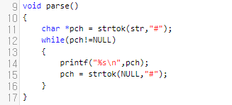 보시면 strtok의 1번째 인자에는 parsing을 할, 대상체가 들어가 있습니다. 예를 들자면, "abcd#efg#hijk"와 같은 것들입니다. 그리고, 2번째 인자에는 구분자 집합이 들어가는데요. 여기에서 우리는 '#'을 기준으로 자를 것이므로 '#'만 넣었음을 알 수 있습니다.