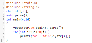 저는 str[i]에 저장이 되어 있는 값을 출력하고자 합니다. 그러면 0부터 29까지 돌면서 str[i]의 값을 print 하면 될 겁니다.