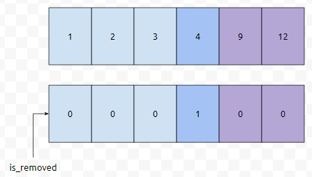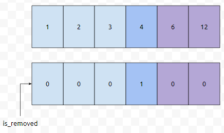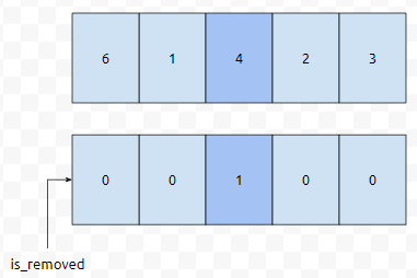 이렇게 정의한다면, 2번째 위치, is_removed[2]를 true로 바꿔주기만 하면 된다는 것을 알 수 있습니다.