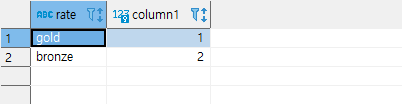 테이블을 생성하는 문은 위와 같습니다. "rate_type" type인 rate와, serial4 type인 column1을 생성하는데요. column1을 pk로 잡아주었습니다.