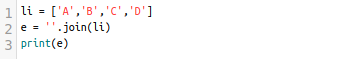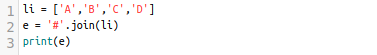 list li에 'A', 'B', 'C', 'D'가 있습니다. 2번째 줄에 '#'.join(li)가 있습니다. 결과값을 봅시다.