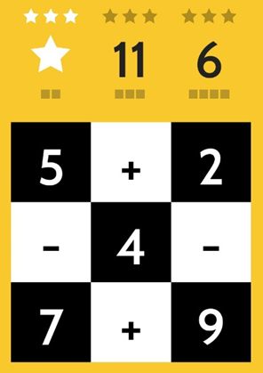 이번에는 11을 만들어야 하는데요. 사용해야 하는 숫자의 갯수는 3개, 연산자는 2개입니다. 7+4도 답은 됩니다. 하지만, 사용한 숫자의 갯수가 2개밖에 되지 않아요. 9 + 4 - 2는 어떤가요? 3개의 수를 사용했고, 심지어 경로가 만들어 집니다. 방문한 곳을 다시 재방문 하지도 않고요. 대충 QUENTO 퍼즐의 규칙을 아셨나요? 백준 10429번 문제는 사용해야 하는 수의 갯수가 주어졌을 때, m을 만들 수 있는지 물어보는 문제입니다. 물론 퍼즐은 3 by 3 크기이고요.