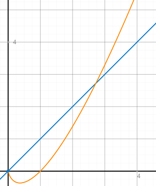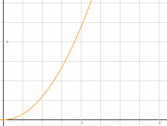 x>=1일 때, 기울기가 계속 증가하면서 도함수의 값도 양수입니다. 그렇다면, 아래로 볼록하다는 이야기가 됩니다. 아래로 볼록한 그래프 중 하나는 y = x^2가 있습니다.