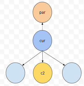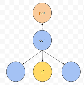 cur의 어떤 정보들을 토대로 c2의 어떤 정보들을 채워야 한다면. 일단, c2에서부터 leaf까지 최대 거리는 dfs 1번으로 구할 수 있습니다. 문제는, 제가 군청색, 주황색으로 칠한 부분들입니다.