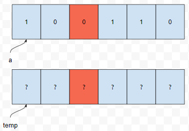 그러면 이런 식으로 bit가 있을 겁니다. 이 때 a = (a<<1);을 해 버리면, 비트들이 왼쪽으로 한 칸씩 이동이 됩니다. 그러면 요런 식으로 될 텐데요.