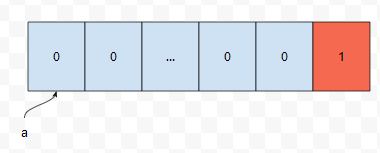 보통, << 연산자는, 어떠한 수의 비트가 켜져있는지, 꺼져있는지, 그리고 집합에 추가하거나 제거할 때, 기본적으로 쓰이기 때문에 잘 알아둘 필요가 있어요. 연습을 하나 해 봅시다. int형이 4byte라면, 32개의 bit로 구성이 되어 있을 겁니다. 그러면 만약에 a = 1이라면 맨 끝에서 1번째 bit만 켜질 거에요.
