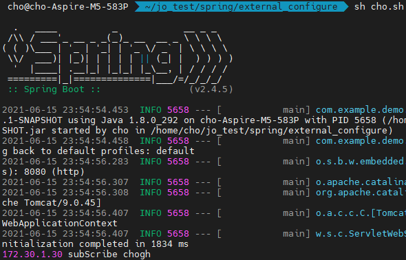 맨 밑에 chogh를 보시면 됩니다. jar 내부에 있었던 설정 값이 바깥에 있었던 설정 값에 의해 덮어 씌워졌음을 알 수 있어요. 이 점만 잘 파악하시면 될 듯 합니다. shell 파일을 기본적으로 다루실 수 있다면 편하게 설정하실 수 있습니다. 다음 시간에 계속 이어서 해 보겠습니다.