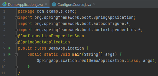 DemoApplication 클래스는 딱히 별 게 없습니다. 단지, ConfigurationPropertiesScan 어노테이션을 추가했을 뿐입니다.