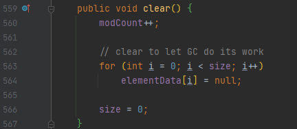 시간 복잡도는 어떻게 될까요? 모든 원소를 돌면서 null 대입하기 때문에 list 크기가 n이라면 O(n)입니다.
