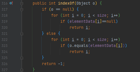 size만큼 돌면서 equals 메소드로 내용이 같은지를 검사합니다. 만약에 같으면, 해당 위치를 리턴합니다.