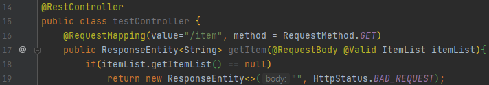 다음에, RequestBody로 들어오는 itemList에 대해서 벨리데이션 한다고 했으므로, itemList 앞에 @Valid을 붙이시면 됩니다. 이거도 문서에 나와있는 듯 하네요. 어찌 되었던 controller 내에서 인풋에 대해서 400 에러에 대해서 처리하는 부분이 싹 없어졌음을 알 수 있어요.