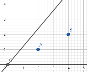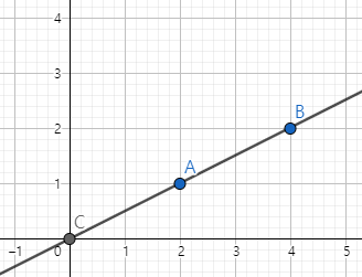 그러면 왜 체감 난이도가 높아졌는가에 대해 먼저 분석해 보겠습니다. 문제를 잘 읽어보시면 원점에서부터 공격 방향이 키워드임을 알 수 있습니다. 그리고 이것은 직선의 기울기와 매우 밀접한 관계가 있음을 알 수 있습니다. 여기까지 읽어보셨다면, 공격 방향의 x값과, 풍선 좌표의 x값이 0인 경우에만 예외 처리를 하면 되겠다. 라는 생각을 하실 수 있습니다. 즉, 기울기로만 처리를 합니다. 예를 들자면, 풍선 1의 좌표가 (2, 1)에 있고 풍선 2의 좌표가 (4, 2)에 있으면 원점과 풍선 1의 좌표를 잇는 직선의 기울기와 원점과 풍선 2를 잇는 직선의 기울기는 1/2로 같습니다.