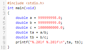 간단하게 프로그램을 작성해서 확인해 봅시다. a/b와 b/c의 값은 다릅니다. 그런데 출력 결과는 어떻게 될까요?
