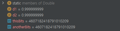 둘이 같네요? 같다고 판단해 버립니다. 실제로는 다른 값인 데도 말입니다. 그 이유 중 하나는 1/10^18은 1/2^52와 비교했을 때 한없이 작기 때문입니다. 어디서 얼핏 듣기로는 Java의 BigDecimal이 좋다고 하는데. 사실 이것도 답이 아닙니다. 왜냐하면 이것은 고정 소수점을 표현하기 위한 것이지, 순환 소수와 같은 것을 표현하는 것이 아니기 때문입니다.