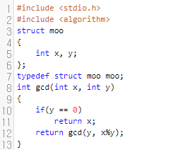 먼저, gcd는 우리가 알고 있는 것과 크게 다르지 않습니다. x >= y >= 0이고 x, y 둘 다 0이 아닌 케이스만 들어온다면 y가 0일 때 x는 0보다 큰 정수이므로 gcd 값은 x를 리턴해 주면 됩니다. 문제는 x가 y의 배수일 때 왜 y를 리턴 안 해 주었냐는 건데요. x가 y의 배수라면 12번째 줄에서 y값이 들어가고 x%y가 0일 겁니다. gcd(y, 0)의 값은 y이므로 따로 넣지는 않았습니다.