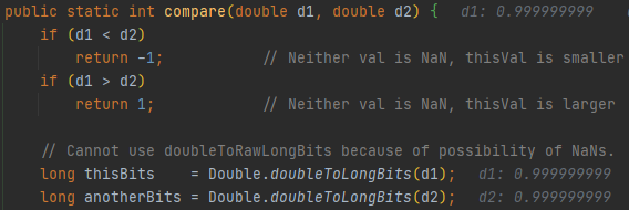 그러면 double의 compare를 이용하면 소용이 없을까요? 네. 소용이 없습니다. 이펙티브 자바에서는 float나 double을 비교할 때에는 이 메서드를 이용하라고 하는데요? 그것은 정밀도를 어느 정도 포기했을 때 이야기입니다. 이 문제는 생각보다 정밀한 값을 요구하고 있습니다. double로도 처리가 안 되었다면, double로 처리할 수 있는 오차보다 더 세밀한 오차까지 컨트롤 할 수 있어야 한다는 의미입니다. 제가 말했던 테스트 케이스를 그대로 넣어보겠습니다.