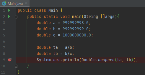 Double.compare로 a/b와 b/c의 값을 비교해 보겠습니다.