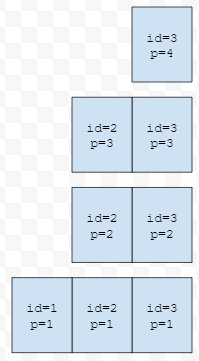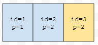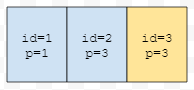 다음에는 id가 2인 것이 선택됩니다. 왜요? p가 제일 높은 것이 id가 2인 것과 3인 것이 있는 상황인데요. 2가 3보다 작기 때문이에요.