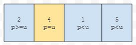 2, 4, 1, 5 순으로 실행되었습니다. 그러면 4 > 1이니, 4를 기준으로 상황을 봅시다. 4가 실행될 당시 우선 순위가 u였다면, 2가 실행될 당시에는 priority가 u보다는 크거나 같아야 하고, 1과 5는 u보다 작거나 같아야 할 겁니다. 이 정보만 주어진 상태이니 이렇게 둬도 무방하다는 것을 알 수 있어요.