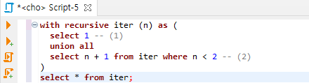 그 다음에 (2)가 실행될 때 iter는 노란색 부분을 의미해요. iter에서 select n + 1을 할 건데요. 문제는 n < 2인 것이 없어요. 그러므로, 그 다음 결과셋이 없고 따라서 재귀가 끝나게 됩니다. 이 정도만 이해하시면 될 듯 하네요.