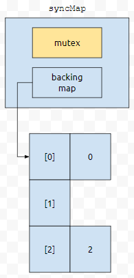 그러면 0번 객체를 0번 버킷에 넣는 동안에, 다른 쓰레드는 backing map에 접근하지 못합니다. 이미 mutex 객체를 가지고 잠궈 버렸기 때문입니다. 0번 객체에 넣는 작업이 끝난 후에, 2번 버킷에 2번 객체를 넣는 작업이 수행될 수 있을 거에요.