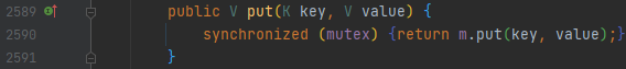 map에 접근할 때 동기화 용으로 쓰게 됩니다. get 메서드를 봐도 mutex에 synchronized를 걸어놓았어요.