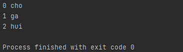 'cho', 'ga', 'hui' 순서로 저장되어 있는 리스트가 있습니다. 뭔가 순회하는 것 처럼 보이는데요. 결과를 보겠습니다.