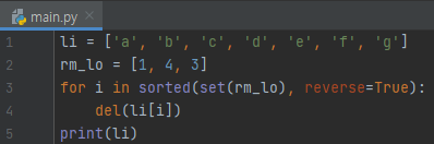 다른 문제 상황. 0 based에서 1번째, 3번째, 4번째 원소를 리스트에서 삭제해야 한다고 해 봅시다. 원래 의도라면 'b', 'd', 'e'가 제거되어야 합니다. 실행 결과는 어떻게 나올까요?