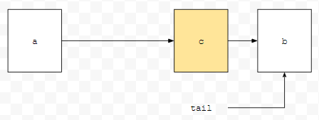a, b, c로 연결된 상태에서 b에 접근했습니다. 그러면 어떻게 동작할까요? b를 제거합니다.