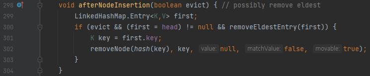 AfterNodeInsertion을 봅시다. 그러면 evict이고 first가 NULL이 아니면서, removeEldestEntry(first)가 나옵니다. 이 3개의 조건이 참이면, 처음 원소를 remove 하게 됩니다. 그런데 저는 removeEldestEntry 메서드를 size() > capacity인지를 검사했단 말입니다.
