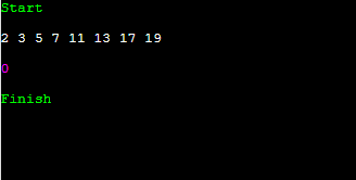 이제 main 함수를 이렇게 작성해 봅시다. 그리고 실행을 해 봅시다. 저는 p[i]가 0인 i값을 모두 출력했는데요. p[i]가 0이라는 의미는, i가 소수라는 것입니다.