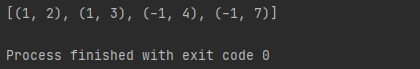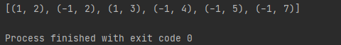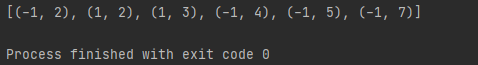먼저, 3번째 줄에서, 0번째 원소를 기준으로 정렬을 하는데, 내림차순으로 정렬합니다. 그러면 정렬 결과는 어떻게 나올까요? (1, 2), (1, 3), (-1, 2), (-1, 7), (-1, 4), (-1, 5)가 나올 겁니다. 1차 정렬이 종료되었습니다. 다음에 이 결과를 가지고 또 정렬해 버립니다. 4번째 줄에서 1번째 원소 오름차순으로 정렬을 하는데요.