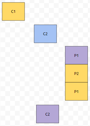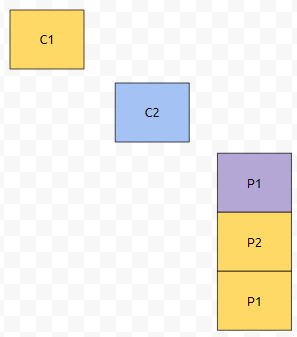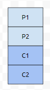 먼저, List는 처음에 비어 있습니다. 그리고 C1, C2, P1, P2가 생성되어서, 실행 가능한 상태라고 해 보겠습니다. 이 상태에서 Consumer 둘이 C1, C2 순서대로 들어온다고 해 봅시다.