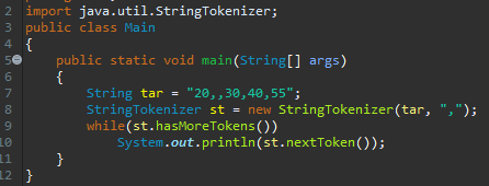 그러면 두 번째 인자에 ","을 넣어주면 됩니다. tar는 "20,,30,40,50"임을 알 수 있는데요. 1번째 ','과 2번째 ',' 사이에 아무런 문자도 없어요. 그러한 경우, 무시가 된다고 했으니, ','만을 구분자로만 끊어버리면, "20", "30", "40", "55" 순으로 나올 겁니다.