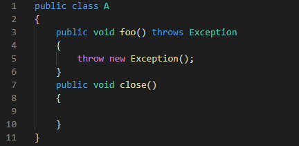 그러면, 이런 식으로 try 소괄호 안에 A a = new A() 구문을 넣으면 됩니다. 이 정도면 정말 될까요?