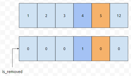 이렇게 정의한다면, 2번째 위치, is_removed[2]를 true로 바꿔주기만 하면 된다는 것을 알 수 있습니다.
