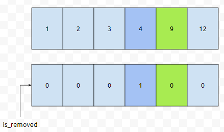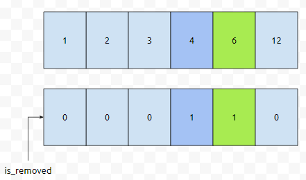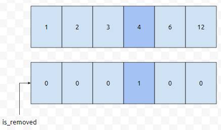 이렇게 정의한다면, 2번째 위치, is_removed[2]를 true로 바꿔주기만 하면 된다는 것을 알 수 있습니다.