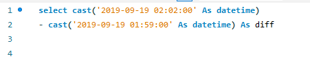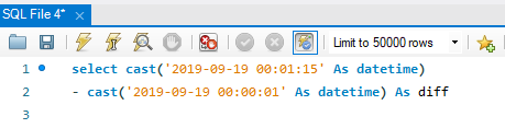 이런 쿼리를 생각해 봅시다. 보시면 2019-09-19 00:01:15에서 2019-09-19 00:00:01을 빼고 있어요. 결과값을 볼까요?