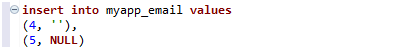이 쿼리를 수행하면, 빈 문자열과 NULL이 들어가는데요. 이 때 NULL 값이 아닌 빈 문자열 ''이 indexing 됩니다.