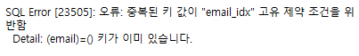 왜? 'cho@a.com'은 널이 아니기 때문에, indexing이 되었기 때문입니다. 그리고, 해당 인덱스는 unique 조건이 걸려 있었습니다.