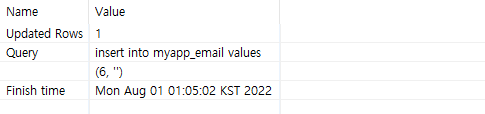 이제, 빈 문자열 데이터를 넣어보니, 성공함을 알 수 있습니다.