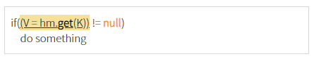 null value를 허용하는 구조라면, 어떨까요? key K값이 있어도 value 값이 null이라면, get(K)가 리턴하는 값은 null 입니다. 즉, 어떤 key K가 있는지 검사하고 싶다면, containsKey를 써야지, get(K)의 리턴값이 null이 아닌지 검사하면 안 된다는 것입니다. null value를 허용하는 경우가 있기 때문입니다. 널 값을 조심해야 한다는 겁니다.